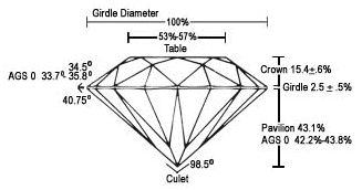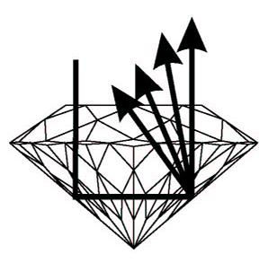 Therefore, if a skilled diamond cutter takes all variables into consideration and positions the top and bottom facets of a gem in a precise known angle, the ray of light will enter the diamond, refract, and reflect internally – like a mirror- back to the observer point of view.