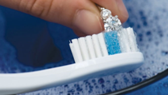 Please be gentle with the toothbrush if you have fragile settings, like older prongs in antique or worn jewelry or a tension setting. So. Then, place your items in a wire strainer and rinse under warm running water. Pat dry with a soft, lint-free cloth. If you are working over a sink, make sure to close the drain. There are some other types of chemically treated cloths that are especially useful to polish the metal portion of your jewelry.